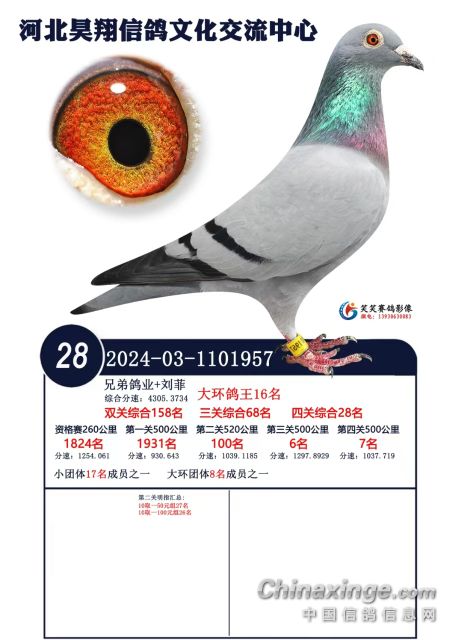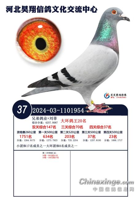本鸽舍黄金配对2020年做出青岛文生公棚决赛亚军2020-03-0655248-双关鸽王冠军三关鸽王4名决赛亚军赢得14项指定鸽大奖,同窝获得佰虹羽公棚三关鸽王冠军。决赛冠军,现在正式接受预定呦鸽一万一羽能接受的加微信18333633378
