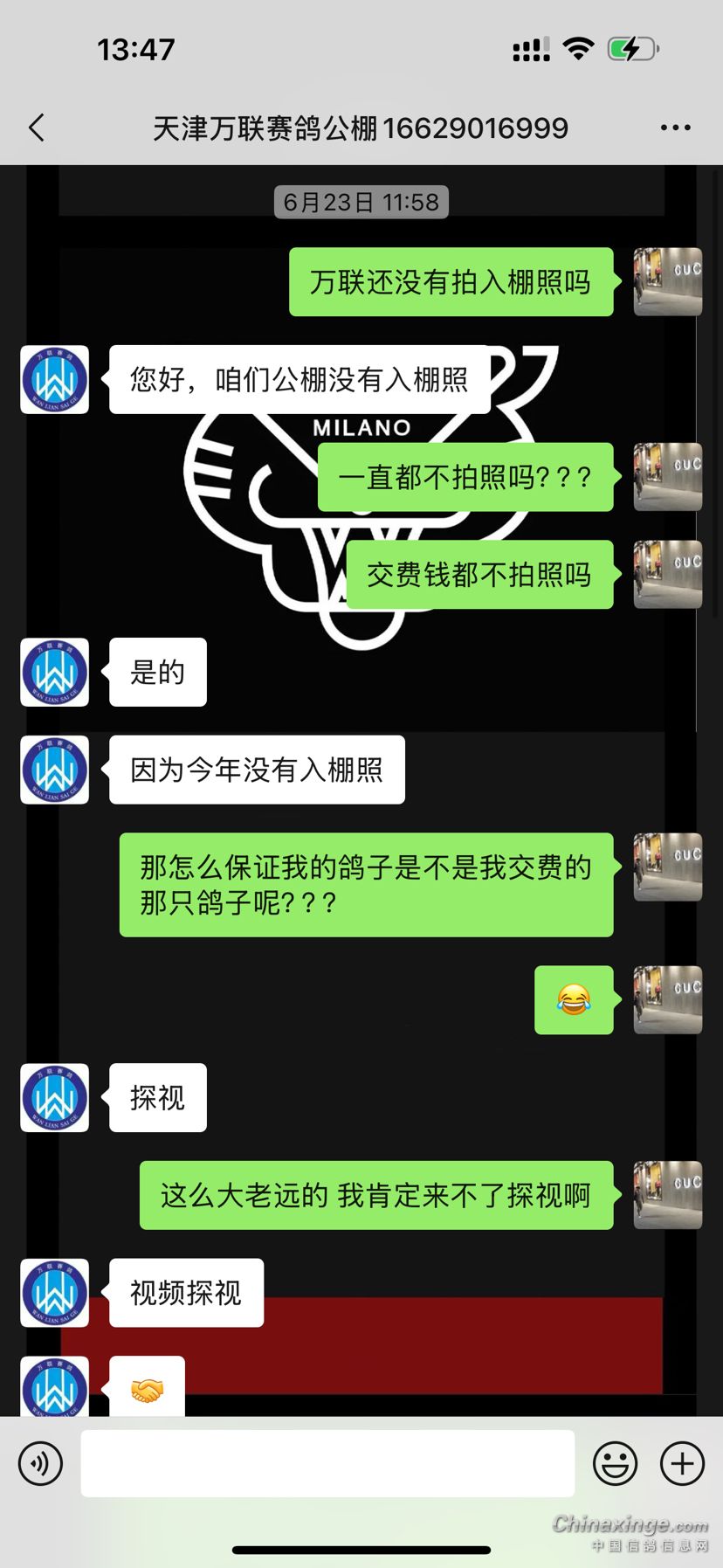 有交天津 万联公棚 的吗???他家入棚照不拍,公棚鸽友群不建,种种迹象都让鸽友不放心… 请问有了解的鸽友聊聊吗 哎