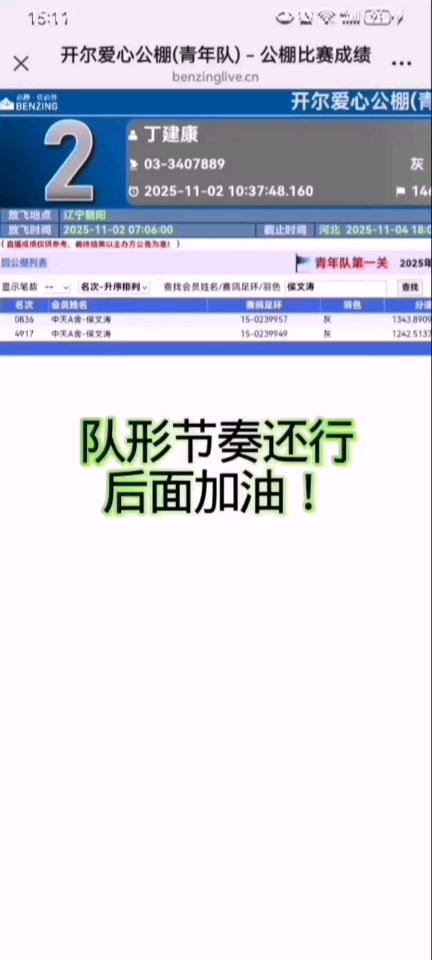 本舍米卫鸽王家族支援各地鸽友惊喜连连 感谢本地任大哥发来喜讯荣誉时刻共享 本舍米卫鸽王家族 你有信心他定不负期待 为大哥喝彩!