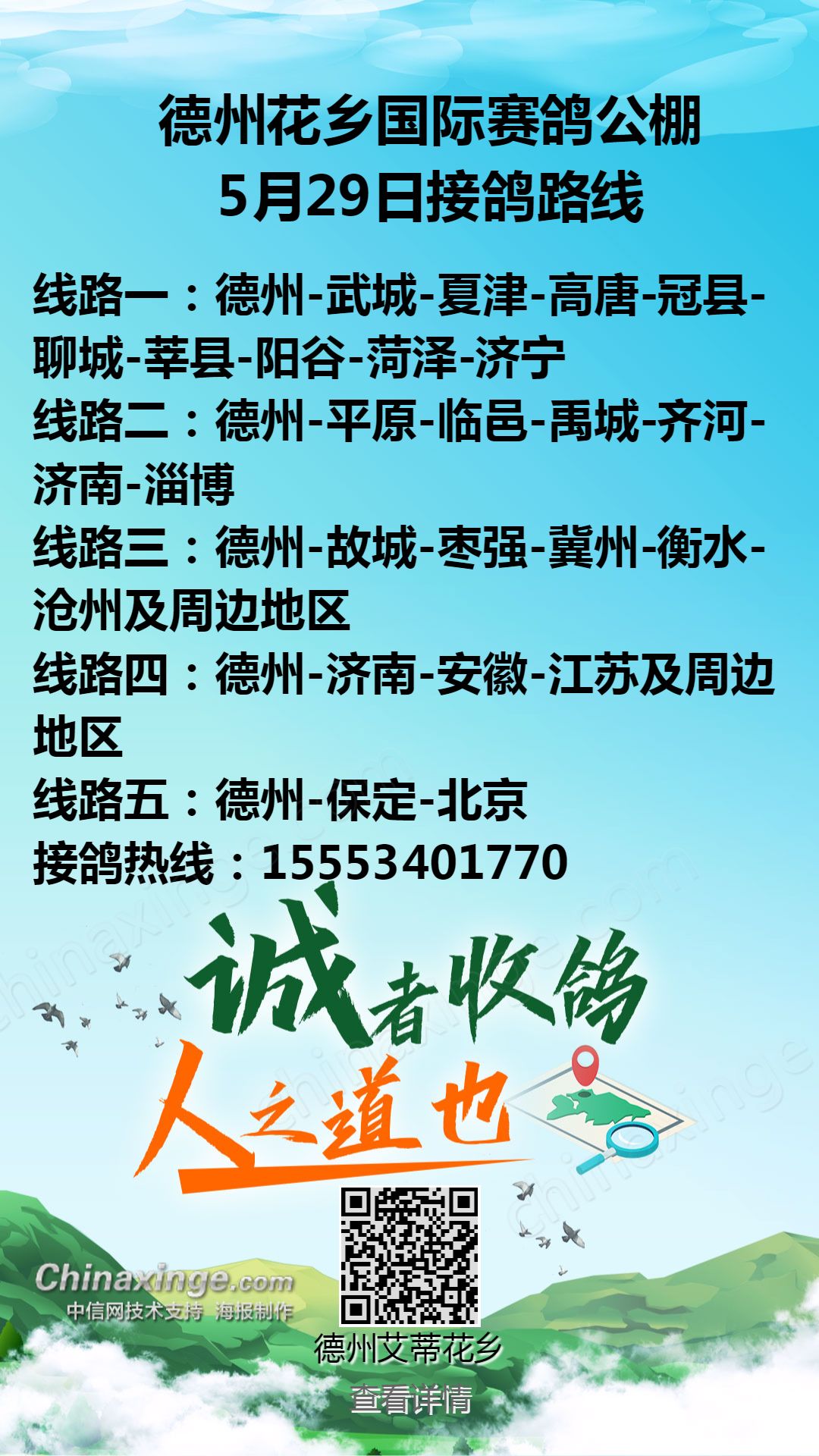 德州花乡国际赛鸽公棚: 5月29日接鸽路线