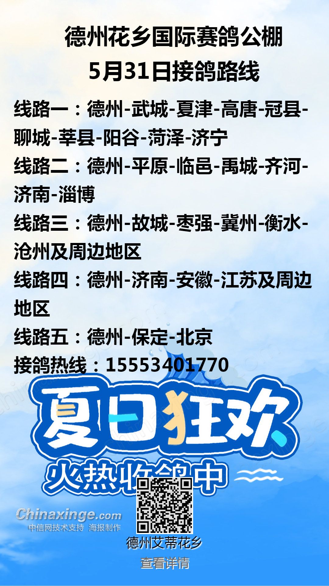 德州花乡国际赛鸽公棚 :5月31日接鸽路线