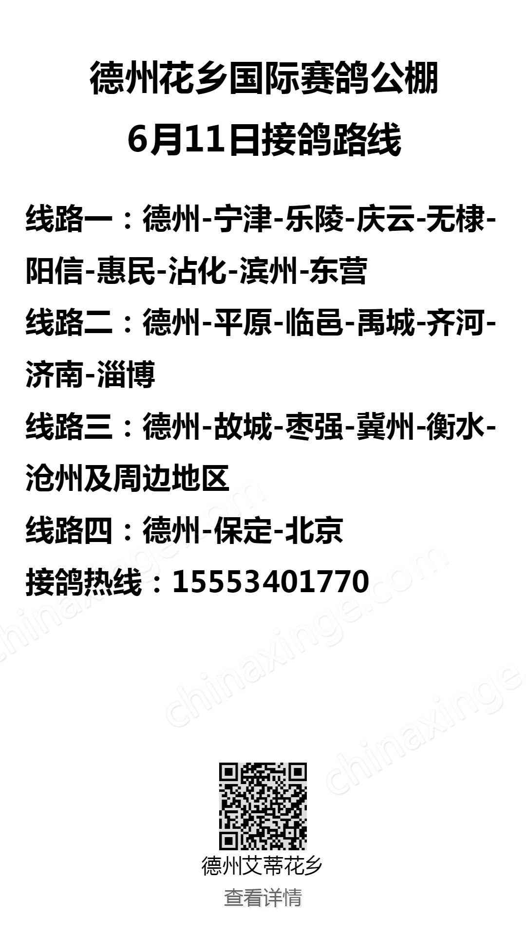德州花乡国际赛鸽公棚 :6月11日接鸽路线
