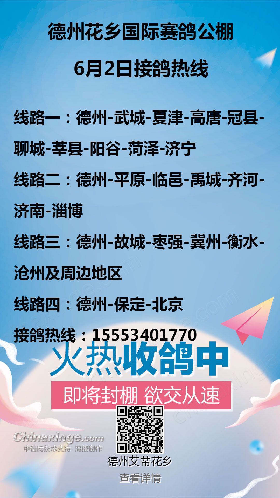 德州花乡国际赛鸽公棚 :6月2日接鸽热线