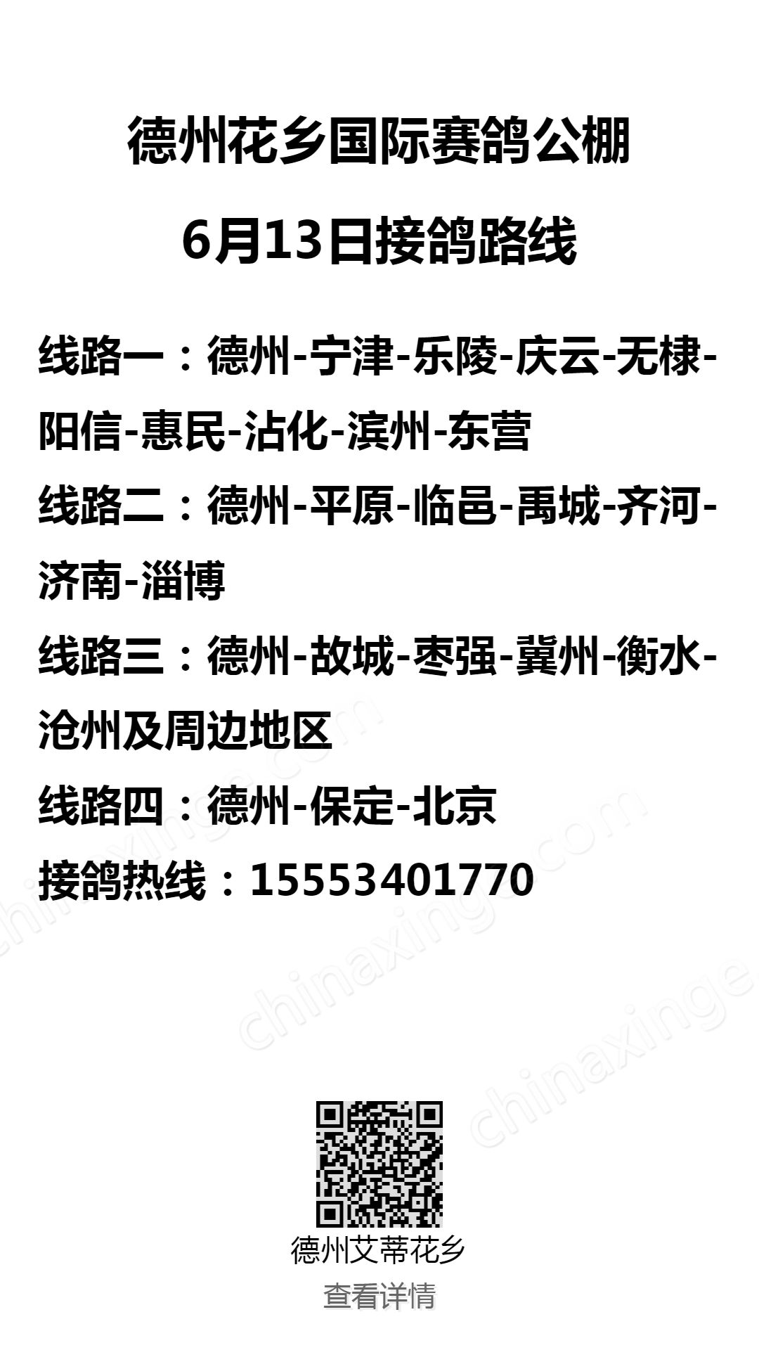 德州花乡国际赛鸽公棚 :6月13日接鸽路线