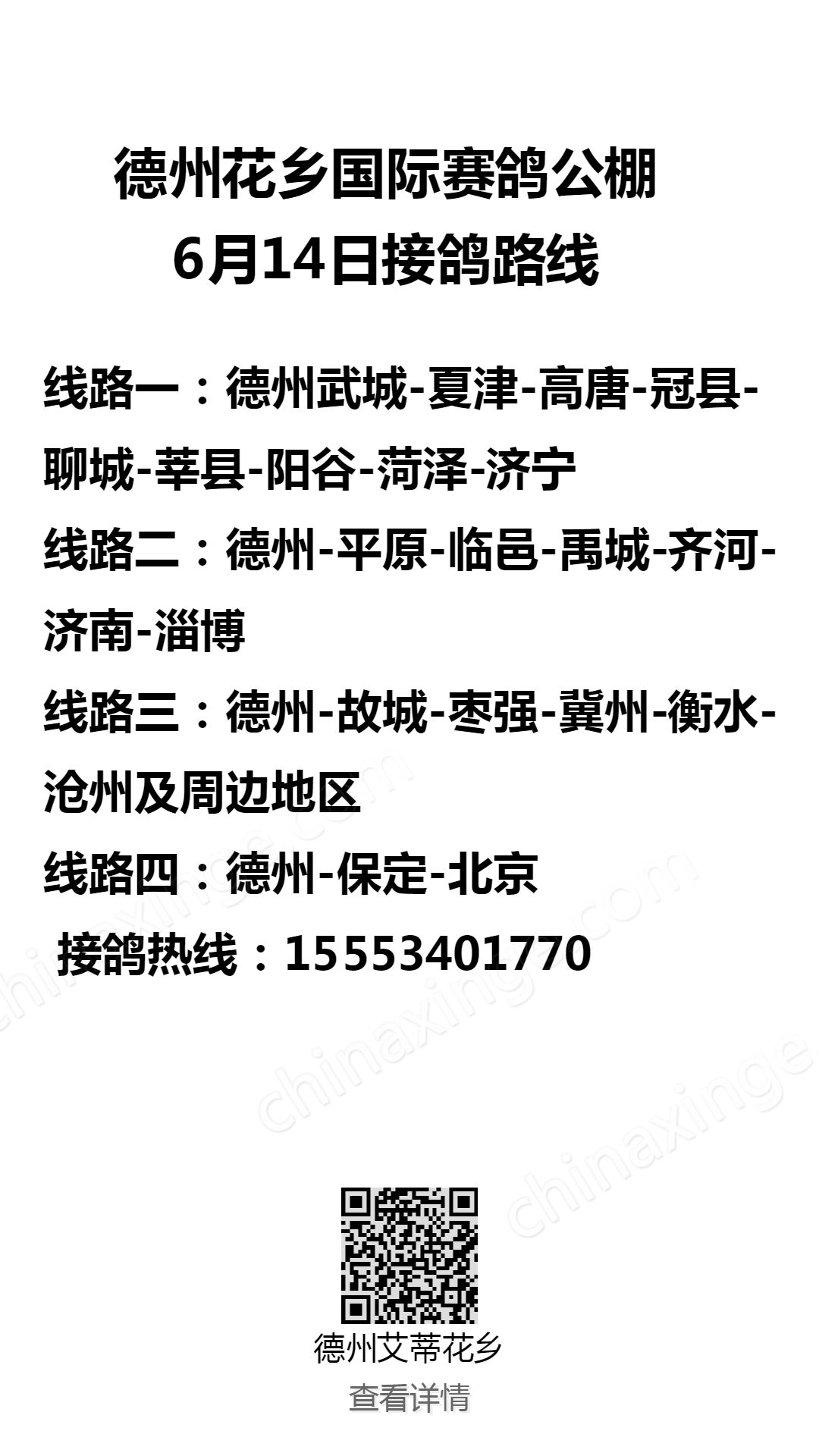 德州花乡国际赛鸽公棚: 6月14日接鸽路线
