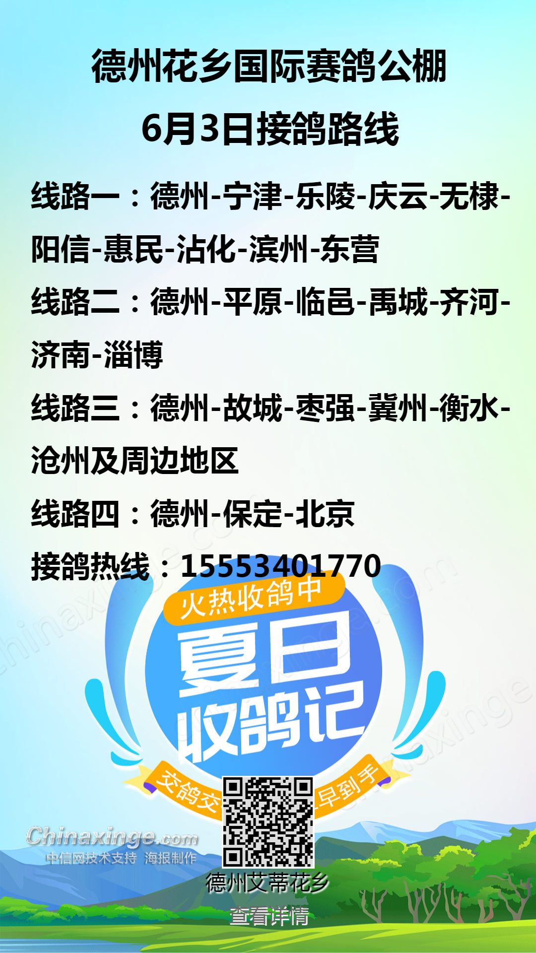 德州花乡国际赛鸽公棚 :6月3日接鸽路线