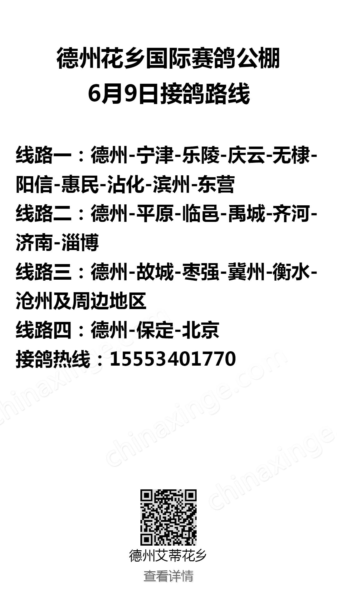 德州花乡国际赛鸽公棚 :6月9日接鸽路线