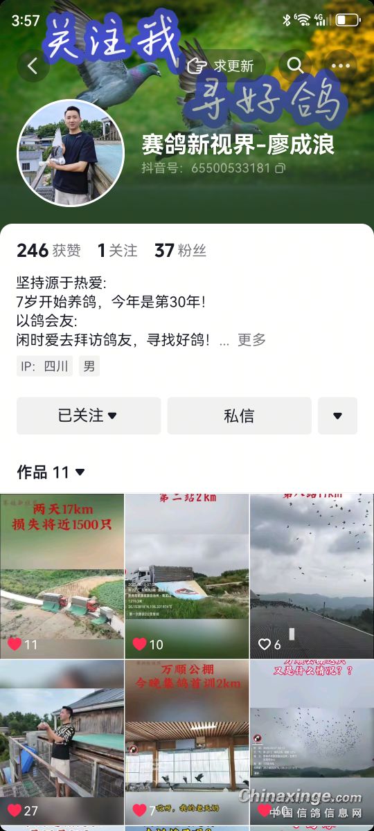 能做自己喜欢的事情是幸福的,鸽子带给我快乐!愿意结交八方鸽友,聊鸽事学鸽经
