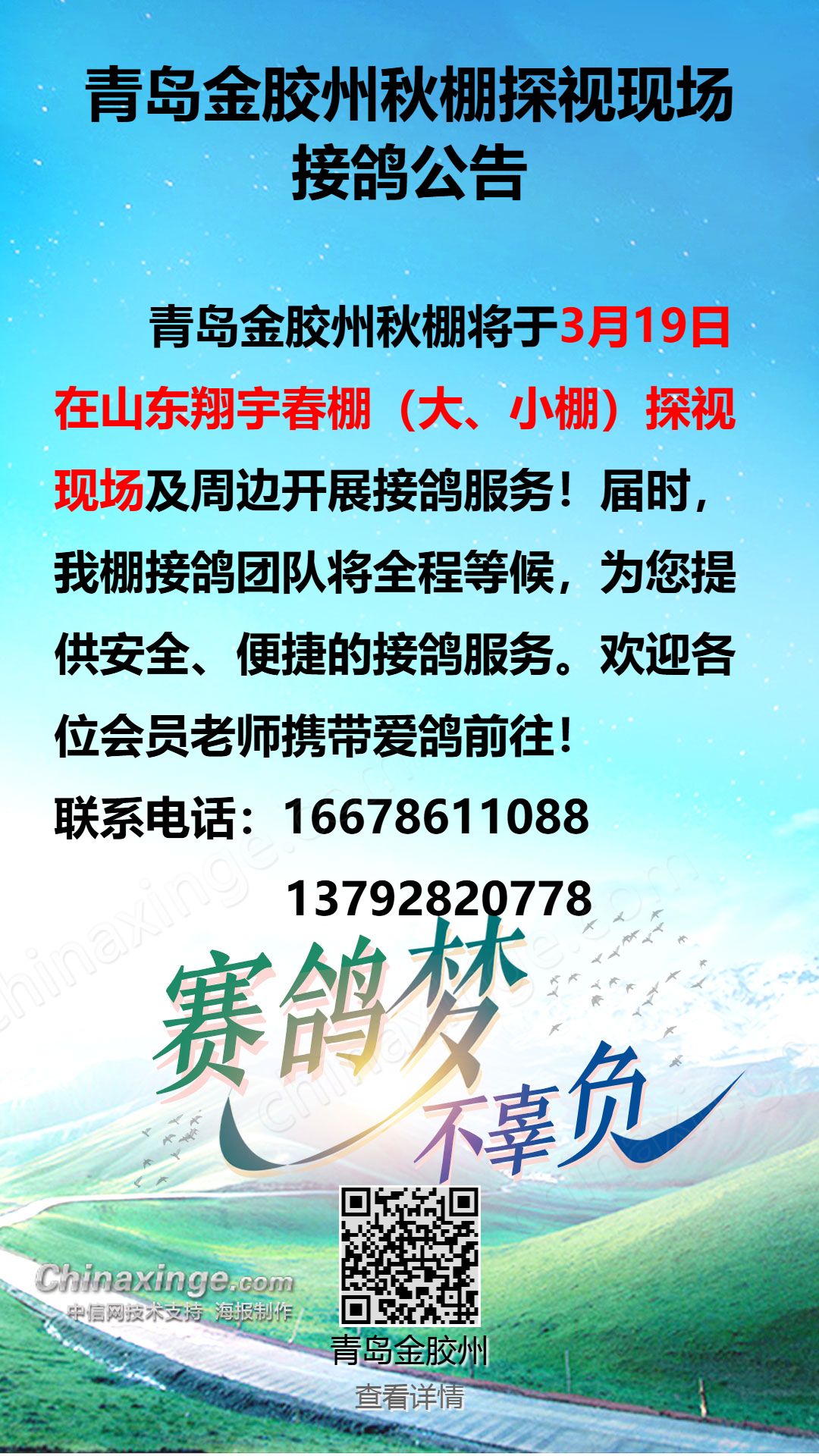 青岛金胶州秋棚探视现场接鸽公告