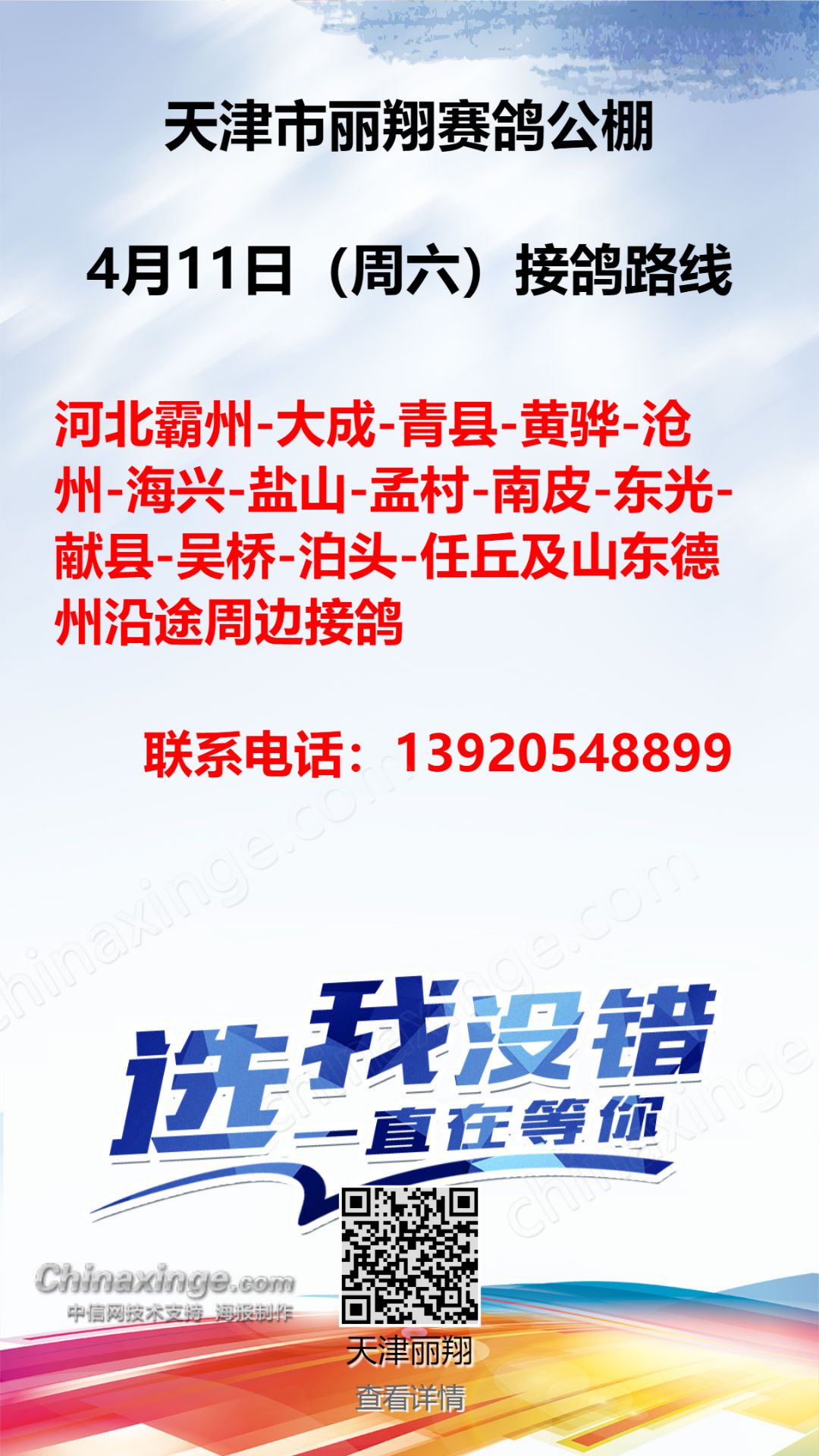 天津丽翔公棚4月11日(周六)河北省-山东德州方向接鸽