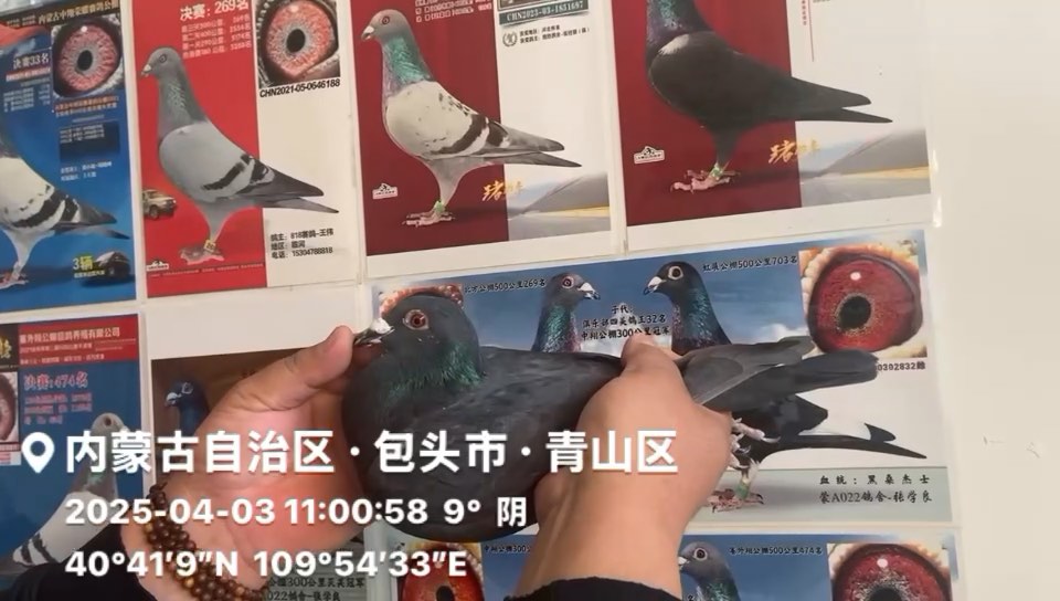 获得: 21年中翔荣耀公棚预赛137名,决赛33名。 21年塞外翔公棚预赛46名,决赛474名。 22年中翔公棚300公里灭关冠军 23年中翔公棚决赛11名 24年起龙公棚决赛927名 24年塞外翔公棚决赛122名