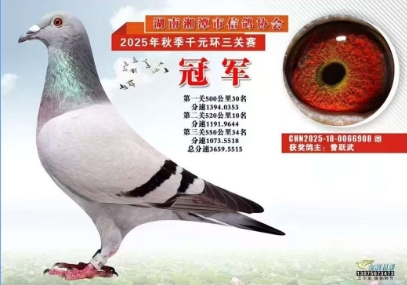 春赛完美收官:斩获双关四关鸽王冠军