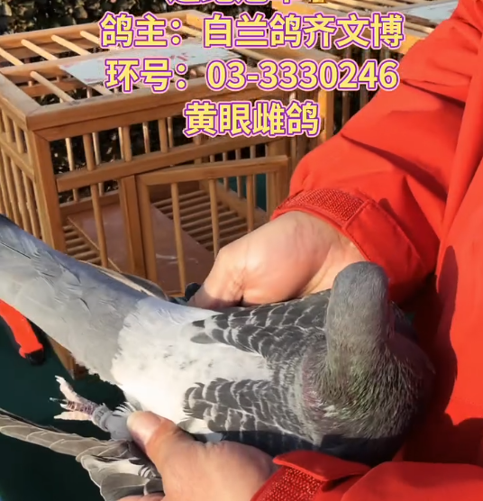 清晨8点11分,神州辉煌1号棚在河北省石家庄市赵县开笼,参考空距510公里,共7422羽参赛。下午14点10分冠军归巢,来自名家白兰鸽齐文博的03-3330246雨点,以飞行分速1417.1639米/分获得冠军。