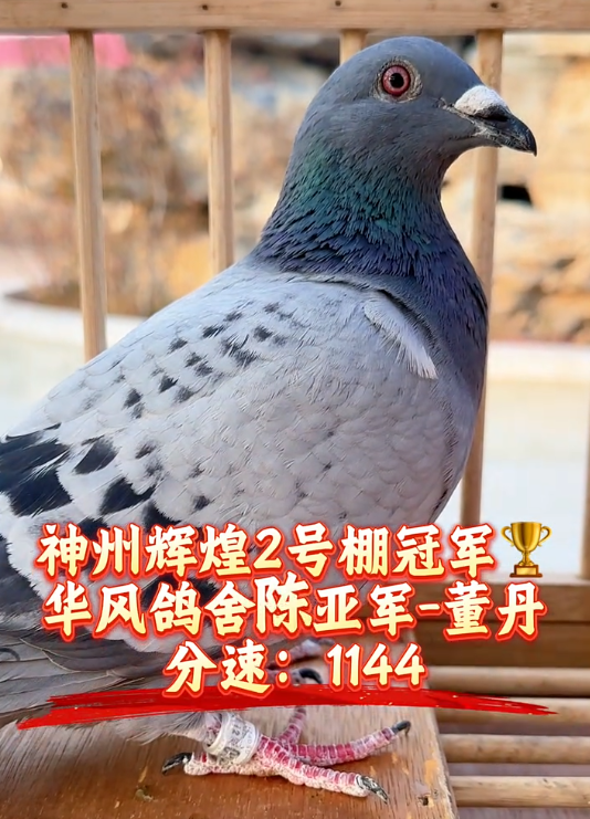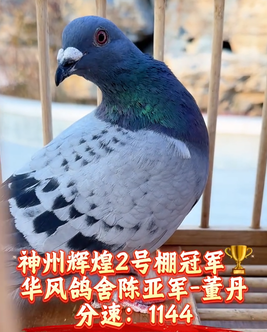 清晨7点38分,神州辉煌2号棚在吉林省四平市开笼,参考空距501公里,共4654羽参赛。3点左右赛鸽归巢,名家华风鸽舍陈亚军-董丹的12-0008287雨点夺冠,飞行分速1144.7057米/分。在得知喜讯后,陈亚军在现场十分激动,恭喜!