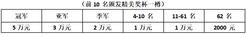加站赛有2羽已报名未上笼退费,报名参赛实际羽数为682羽,取62名。奖金设置如下: