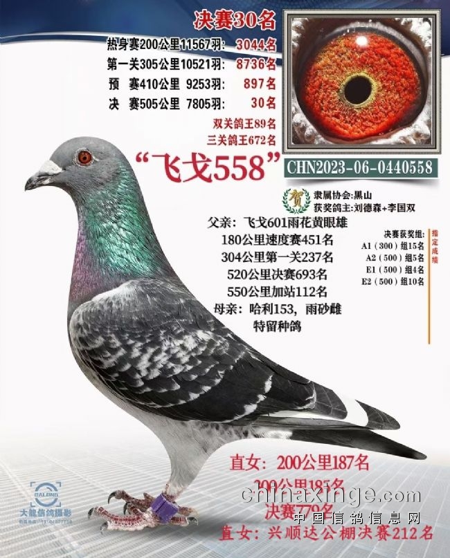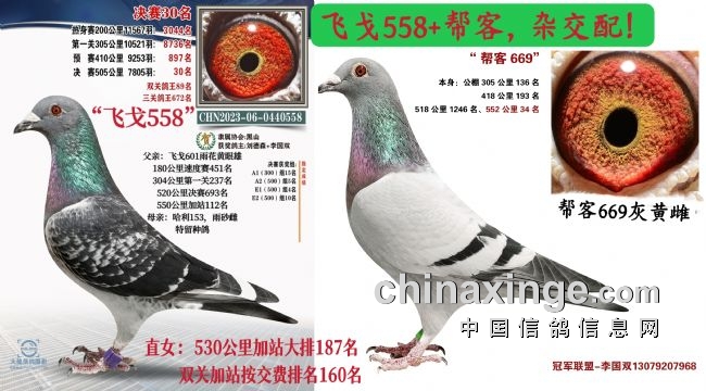 看了以上数据,直接的说明:飞戈558是一只钻石种雄。