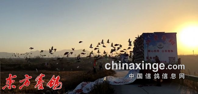 开笼:早上7:28,在南京浦口区开笼。两辆相距百米的赛鸽车同时放飞,冲上蓝天的两路赛鸽瞬间靠拢,集结成一个整体,一路北上迅速踏上回家的天路。它们回家的实际空距为270公里。