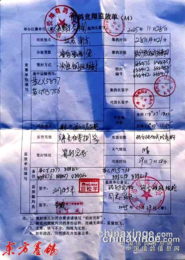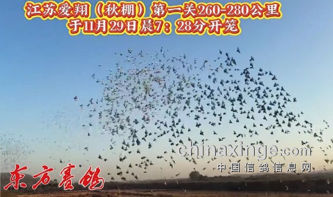 11月29日早上7:28,江苏爱翔赛鸽中心2025年第十六届秋季竞赛第一关280公里赛在南京市浦口区开笼,6621羽爱翔战将角逐本场比赛。