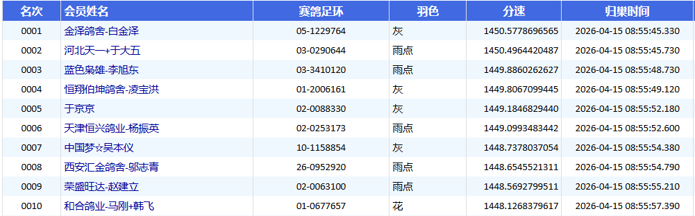 尽管不少参赛公棚尚处在短距离训放阶段,或刚刚完成收费站,但也丝毫未能阻挡他捷报频传的步伐,一天之内拿下多个高位。下面来看这位名家大户的春赛成绩单: