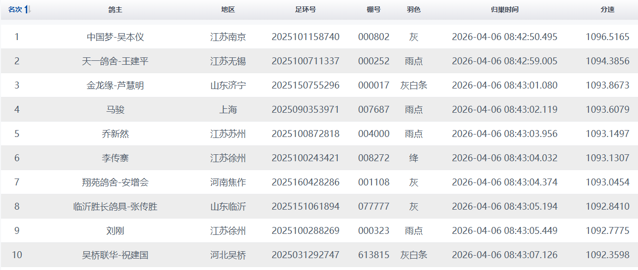 注:文中所涉交鸽数量统计仅供参考,具体数据请以实际参赛记录为准;仅节选部分代表性成绩,完整成绩以各公棚官方公布为准。