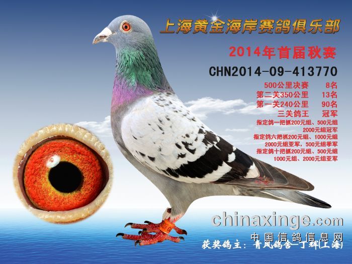三关鸽王冠军:青风鸽舍-丁辉 2014-09-413770 雨点
