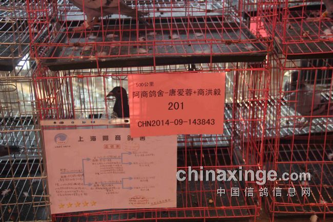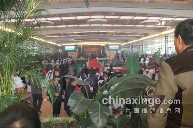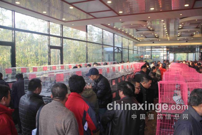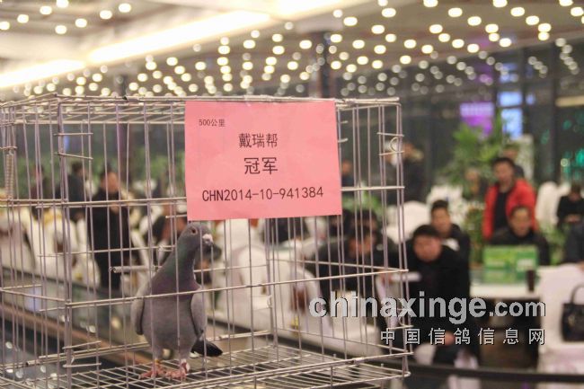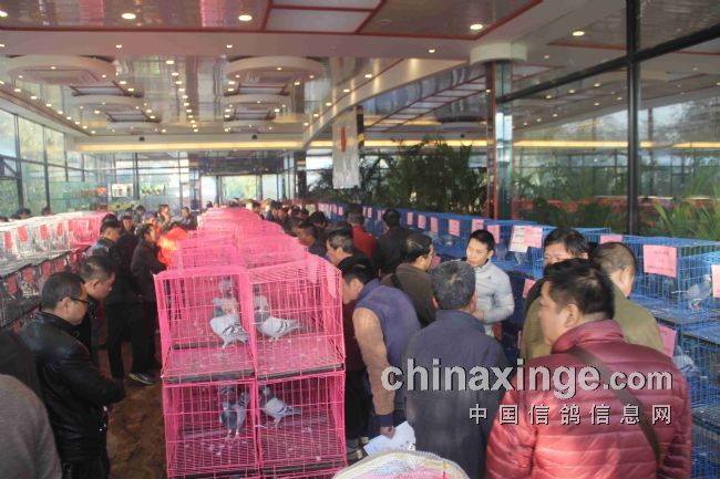 本次拍卖有决赛的前400名获奖鸽和加站赛的前100名获奖鸽,这些待拍卖的获奖鸽在拍卖大厅外展示,以此方便鸽友欣赏和交流。我们看见有的获奖鸽友非常细心,把自己的获奖鸽的血统书打印出来并附在鸽笼外边,供鸽友参考。