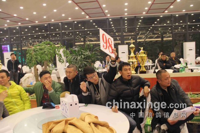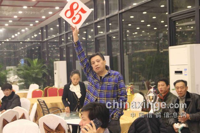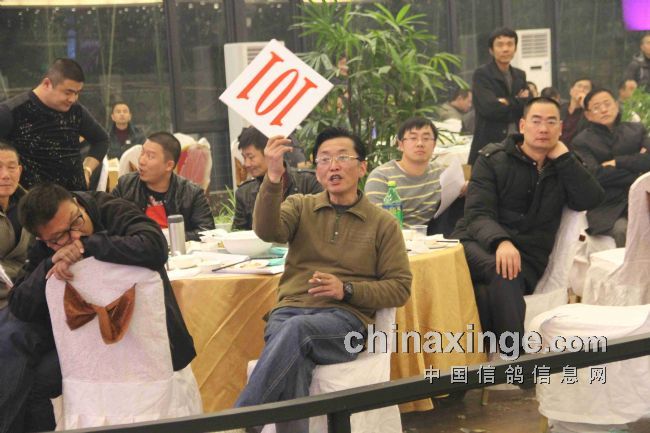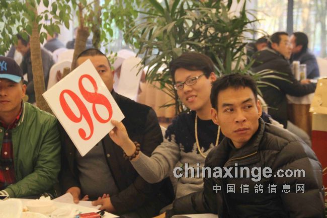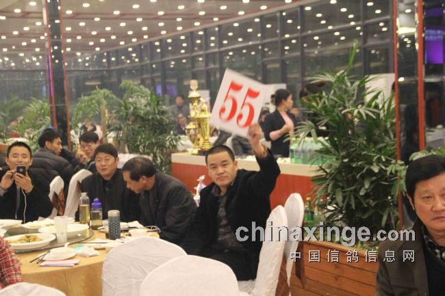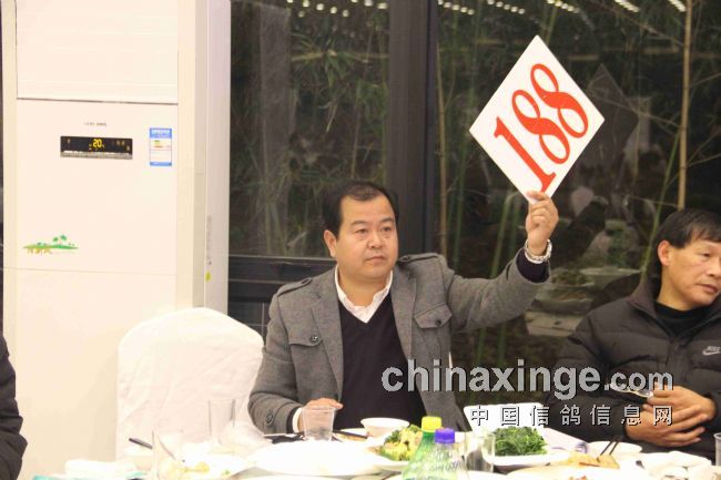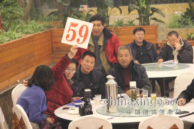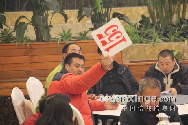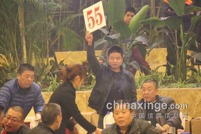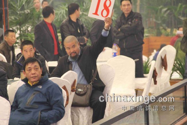 本次获奖鸽起拍价一律2000元,决赛冠军鸽也是2000元起拍,加站赛鸽子也是2000元起拍。在拍卖会开始前,那位拍卖师跟我说,他欣赏我写的《忽悠人的公棚获奖鸽拍卖师》报道,信鸽拍卖应该按照规则来拍,一拍加一个价。但是,有的时候某些鸽友仿佛势在必得,举着牌子不放下来,加之又有其他鸽友竞争举牌,在这种情况下拍卖师的报价就会蹭蹭往上窜,可谓形势逼人,令人不可理解。所以,他在拍卖会前会特意提示鸽友注意,竞拍举牌一定要放下来,再举牌再放下,直至到自己的价位。因为,拍卖师是根据现场三次应声,最高价落锤成交。