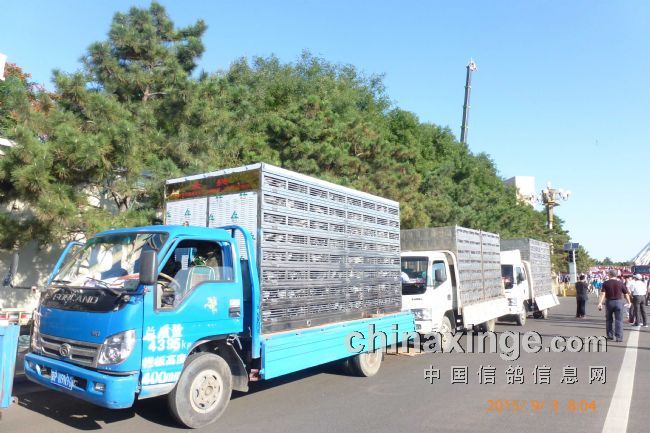 鸽友真够意思,拍到了集鸽车。居然拍了五张照片,不消说,在大会堂东侧还有集鸽车。