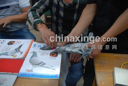 工作流程是:裁判员负责扫描、唱号、核对参赛鸽的环号,盖暗记,装笼。