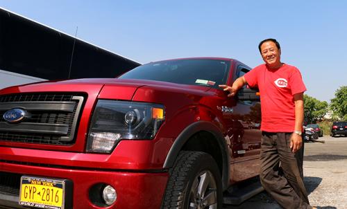 徐军开着这辆福特卡车放飞鸽子、购买巴士零件。 (本文图均为侨报记者苏夏竹摄)