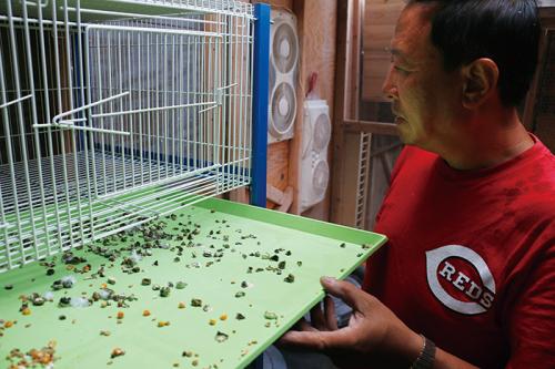 徐军说,鸟粪也有讲究,圆形的说明鸽子身体健康。