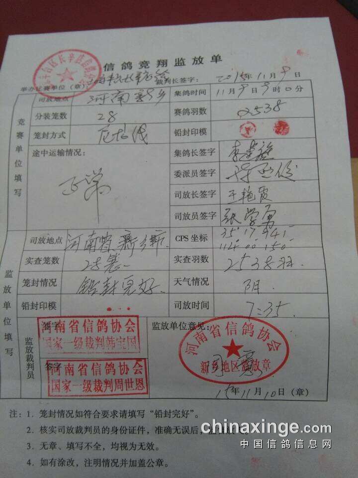 北京长辛店鸽会600元特比环,第一关500公里比赛,上笼1664羽,这羽15-01-0539023获得17名的好成绩;第二关550公里比赛,上笼1364羽,与千元特比一起于11月10日7:35在河南新乡开笼,开笼当日无雨,然归巢沿途一路阴天,雾霾严重。