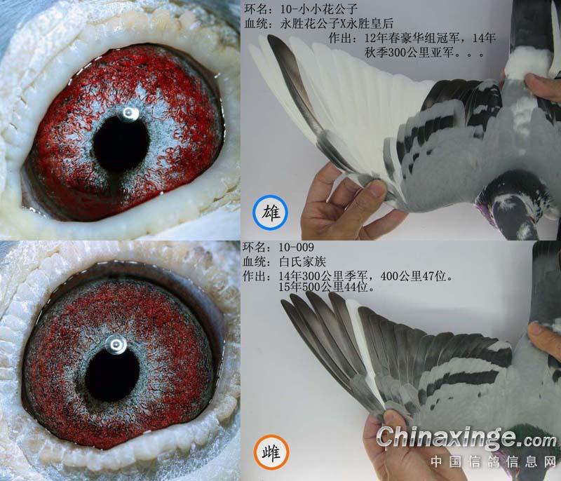 5 此配对中的公鸽以前的配对母是苍白色的,300公里之内速度虽快,但总是逃不过300公里一过就掉的厄运。今年重新换配,作出尾号“144”的白花公,总算在500公里的比赛里也能进入前50。证实了,并非所有短程鸽都无可救药。