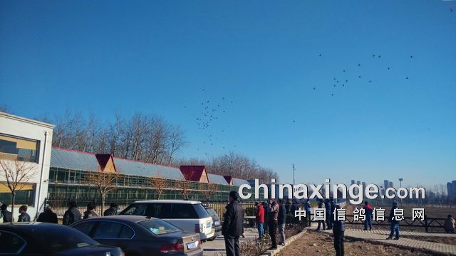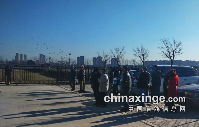 部分鸽友来到公棚观看赛鸽归巢