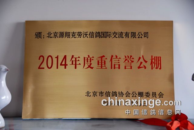 2014年度被北京市信鸽协会评为重信誉公棚
