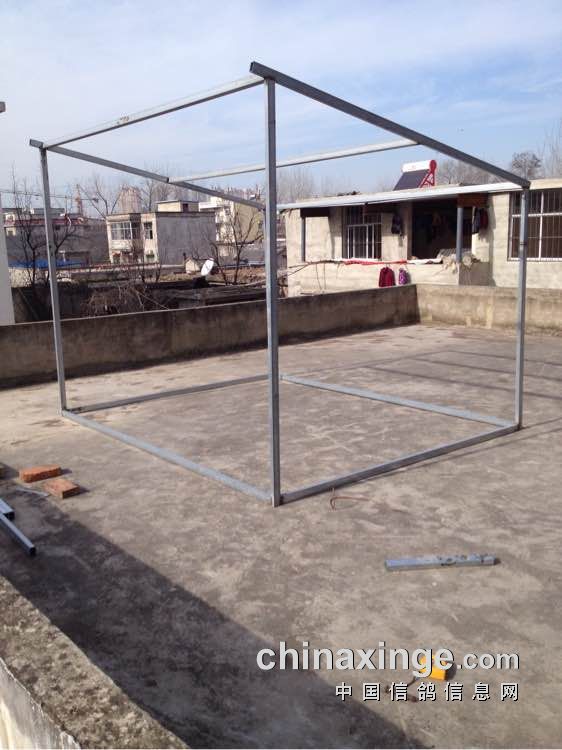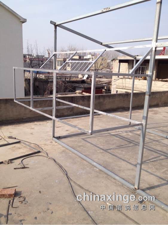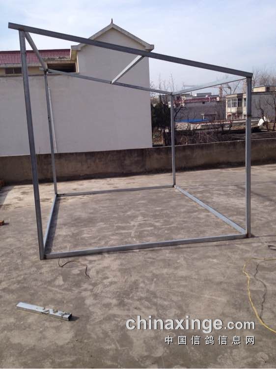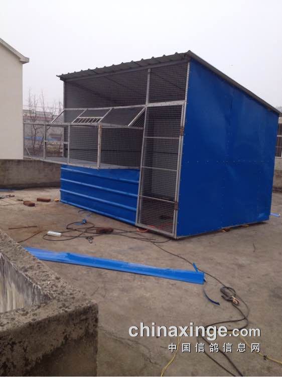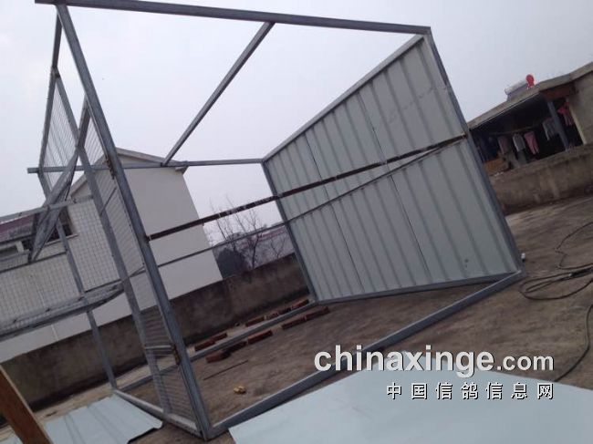 这棚前面还行,棚顶改成夹泡沬铁皮瓦防晒热,底下做成架空距离地面0、5米—1米高地网,注意!防止风吹掉楼下柱子根部打彭涨镙丝焊定。地网干净又放便打扫卫生,三面开窗透气鸽子会抖落很多绒毛和羽粉的不开窗空气会很混浊对人对鸽子都不好。即安全又健康!