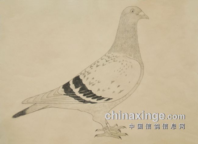 河北省玉田县信鸽协会选送的铅笔画《信鸽》,作者信鸽协会会员李小兵。