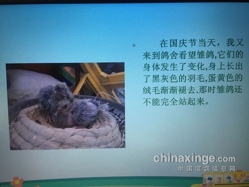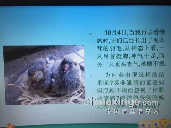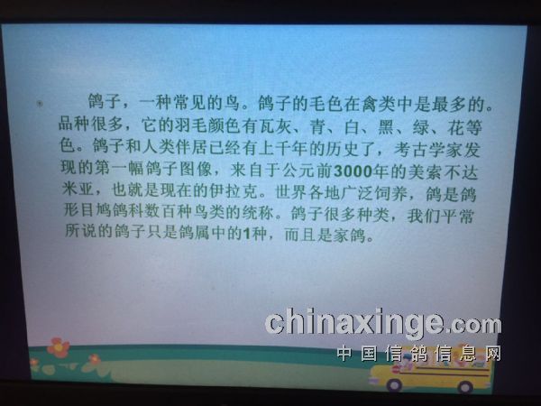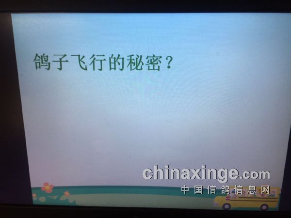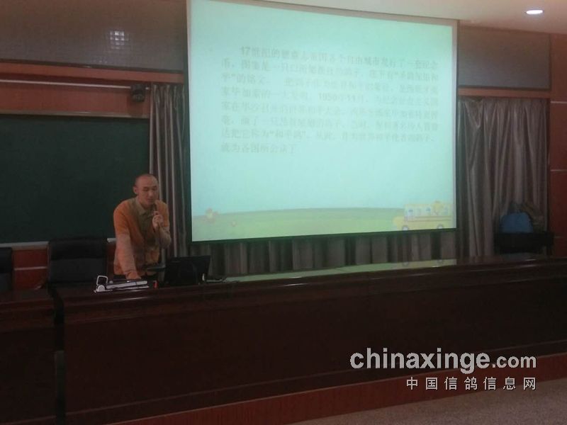 我们两个一拍即合,说干就干。可是往往都是说得容易,等我们开始真正来筹备这件事的时候发现不是当初我们想象的那么容易,从何入手开始讲这个内容,在中间又要给大家展示什么内容,最后又以什么内容结束这节课,等大家听完这节课我们希望大家能了解到什么,这一切都没头绪。我们想,既然没头绪那就慢慢来吧,也不要急,现在网上那么多可学习的,我们可以借鉴别人的。于是之后,我每天早上就一件事,一起床习惯性地打开电脑,上我们信鸽信息网上浏览一下,看看有什么关于赛鸽上的新闻和事件。其实这些事,这十几年都成习惯了。我和鸽爸商量让他先把大框架拟定一下,其他的我从信鸽信息网上寻找东西来填充。