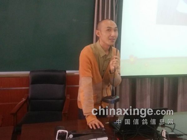 鸽爸在给学生讲课中