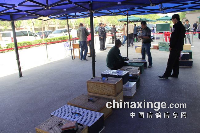 第二场比赛空距为450公里,司放点在宁夏灵武,据威力俱乐部初步统计,本次比赛参赛鸽有一千四百来羽,特比环有效鸽不足六百羽,集鸽工作于17时装笼完毕,西安市裁判员等一行前往比赛司放地。