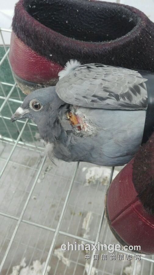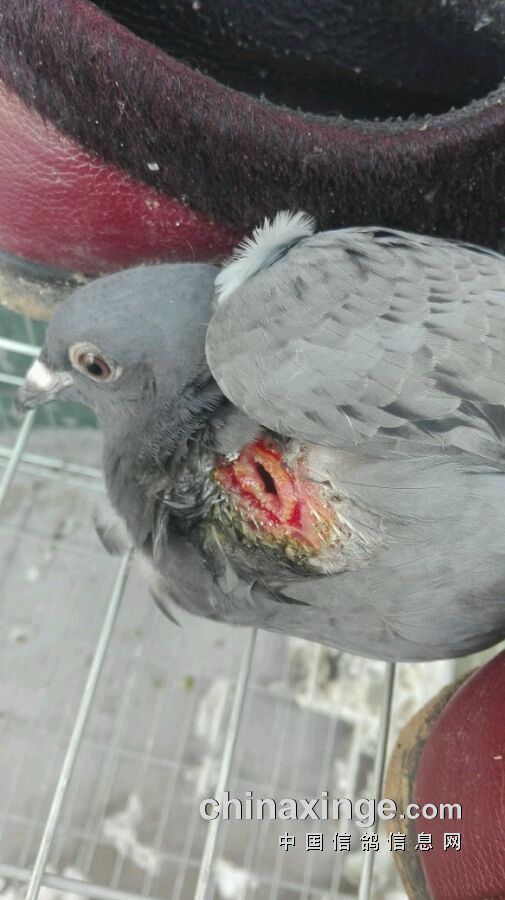 刚上房的幼鸽,飞丟了2天,昨天去棚里一看发现回来了!检查发现受伤了!果断手术!