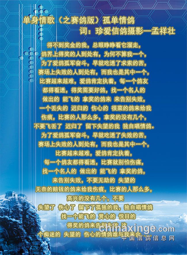 写歌或者是修改歌词。本身就是一种意境。就是专业的词作者也不是百分百都受欢迎。支持《珍爱信鸽摄影》孟哥