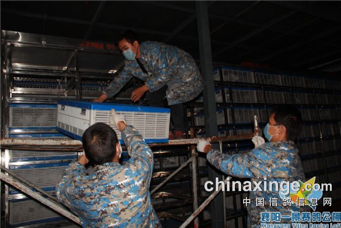 湖北襄阳一景赛鸽公棚于10月17日晚集鸽,18日进行120公里训放,邀请湖北省鸽协、襄阳市鸽协、火车头襄阳鸽协三家裁判共同监督集鸽及开笼。