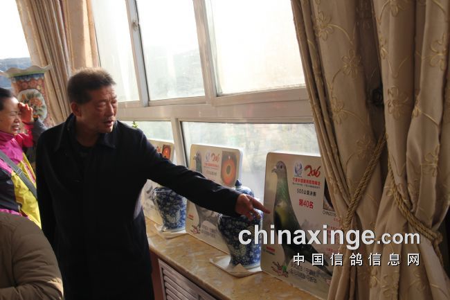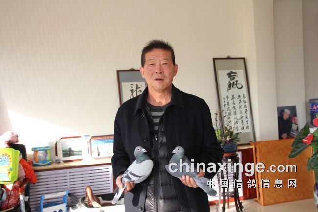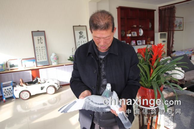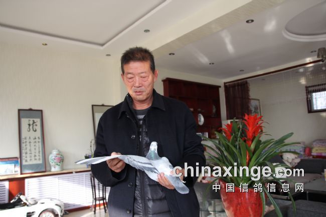 在拍卖会上有一位老鸽友惹人显眼,高举着“20”号拍卖牌子就是不倒,全场最高价40万就是他拍的,全场第二高价30万还是他拍的,其它几万的鸽子再计数。在场的许多鸽友在惊叹,但就是不知道他是谁?我有幸了,第二天一大早玉翔公棚徐大劲经理带我到了他鸽舍。