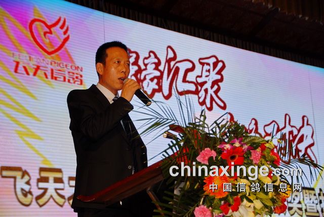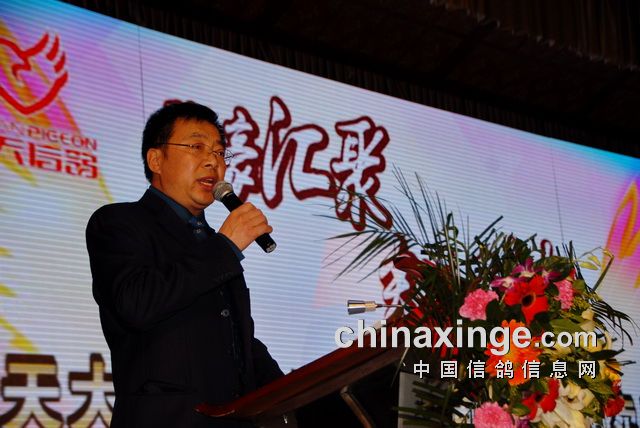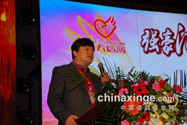 于生维主席首先向到会的嘉宾问候:新年好!在讲话中于主席提到大爱公棚的目标是走向全国,走向世界。他说:我觉得他们的定位就是前进的动力。今天各位鸽友来了都可以感受到大爱公棚对此次颁奖典礼和拍卖盛典的重视和高度的精心筹划,我提议为大爱公棚鼓掌致谢!咱们都是爱鸽子的人,爱鸽子的人都应该有一颗爱心。我希望在新的一年里鸽友们能够团结协作,更好的为新疆的赛鸽事业做出应有的贡献。国务院最近颁发的77号文件《关于休闲体育产业意见》中,专门对各项体育产业提出了新的要求,和一些新的助力政策。信鸽作为体育产业的重要部分,我希望在大家的共同努力下做好上下游产品,做好各项竞翔工作,使新疆的竞翔工作在全国能有一席之地。去年我们举办了首届国家赛,在全国是第九个赛点,说明我们也在逐步和国家接轨。今后我们可能有很多的赛事活动,从今天的现场可以看到已经有全国各地的不管是公棚、鸽协,还有各方面的有关人士来到了现场。说明大家在关注新疆的赛鸽事业,也希望新疆的赛鸽事业在各位的共同努力下会走的更高,走的更远。最后预祝颁奖仪式和拍卖盛典取得成功。祝各位2017年好运!