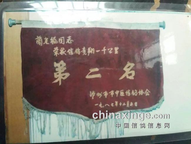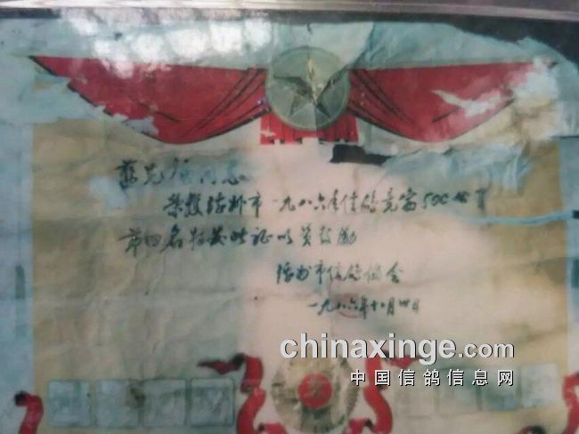 以下图片中,雨点插白条鸽是千公里二名父亲回血鸽,还有二名获得的锦旗等,外加86年500公里四名的奖状。第四张图是我的安德烈种鸽(子代多羽700、750公里得奖,孙代300公里总冠军、特比环冠军、千公里三名等),另外第二张里的雄鸽是我放定西750公里得奖的鸽子,第三张是含血高家绛种鸽。