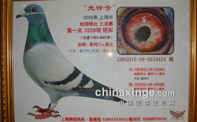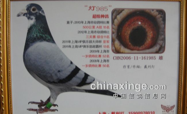 这次又得戴利灯的全力支撑,尤其戴利灯种鸽在黄鹏程处显璀璨。黄鹏程与戴利灯的携手共进的前奏曲,即黄鹏程在2015年上海市秋赛,运用戴利灯种鸽所出子代就表现的相当突出。他在宝山鸽协全市赛360公里(6000余羽)比赛中荣获冠军,在上海市鸽协幼鸽三关第一关400公里(7000余羽)比赛中荣获冠军、7名。在闸北鸽协全市赛400公里(2000余羽)比赛中荣获亚军、7名。这种所向披靡,捷报频传的作派,为两人的携手合作产生了“导火线”的作用。
