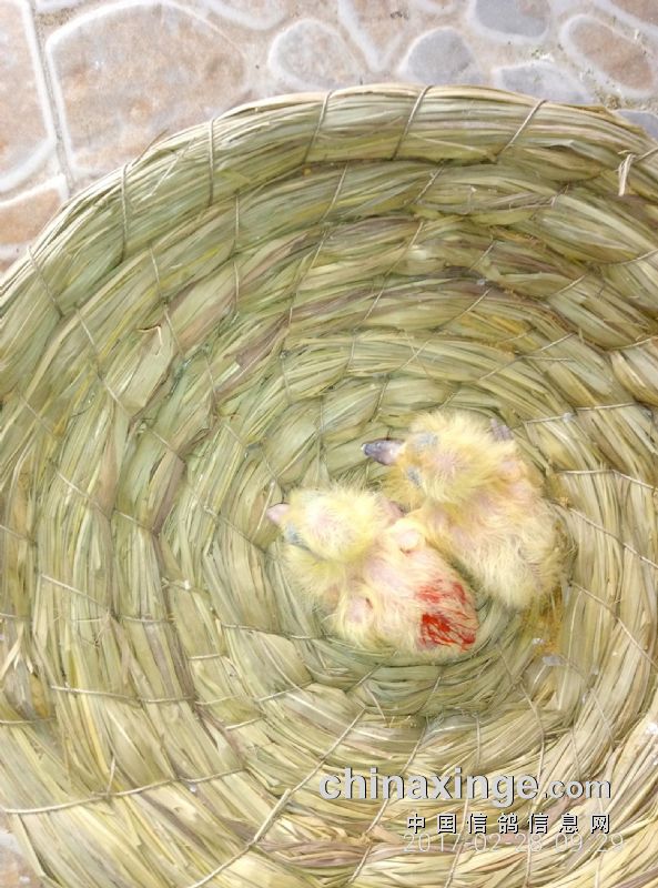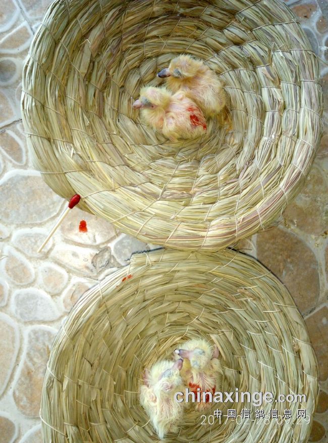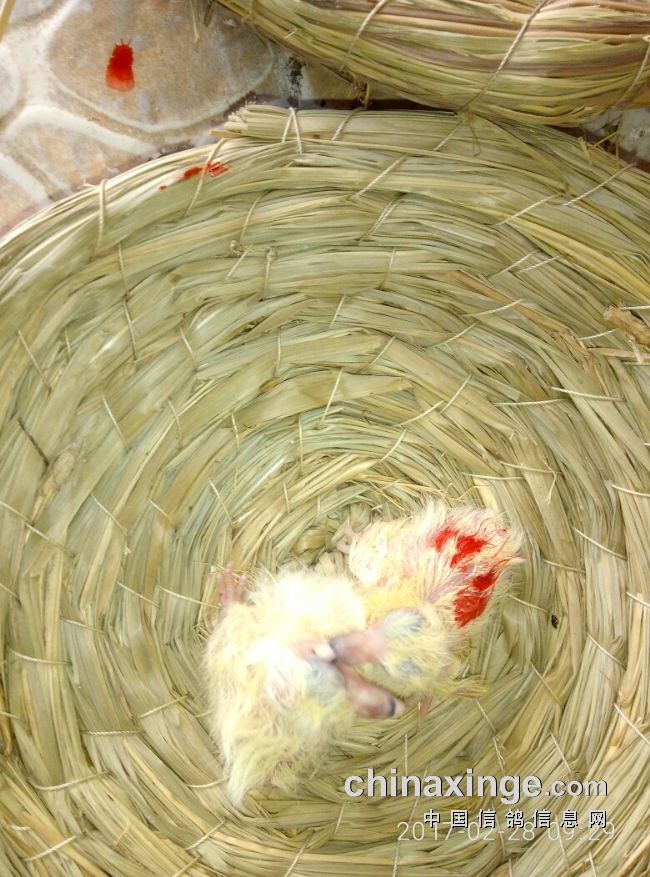 雄性雏鸽涂上红色标记