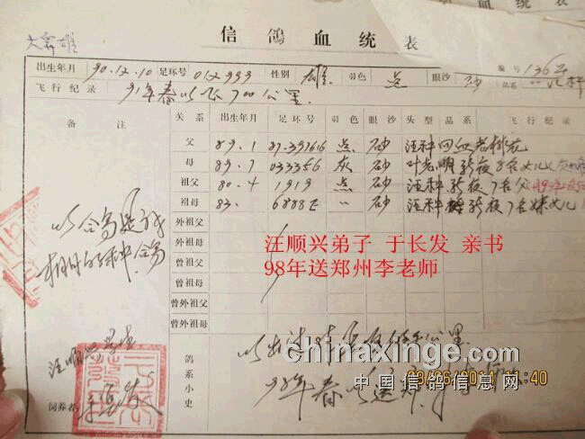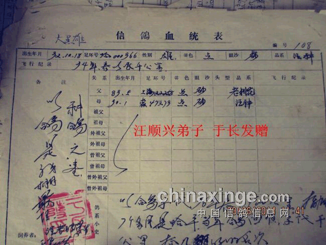 有人说老品系成熟期晚、请看下面这几只不到一岁鸽的赛绩、94年江苏至库尔勒3300公里命名东海女王(93年10月份出生10月龄)04年江苏2700公里哈密东方女神一号、9天飞完全程(雄风二号孙女参赛时不到一岁)小老比从500-1650公里获奖参赛时年龄这有6个月大!都是李鸟和吴淞。