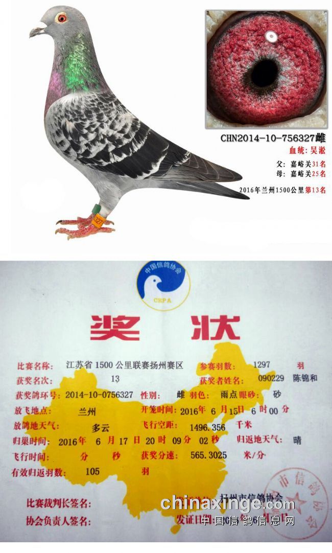 2016年江苏省1500公里联赛扬州赛区第13名,2天半左右。